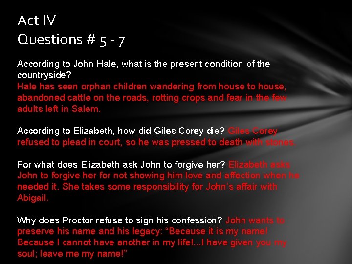 John Hale showed his disapproval by walking out on them. Danforth calls in Elizabeth to question Confirmhis Confession. In Act 3 when Abigail Williams the ring leader of.